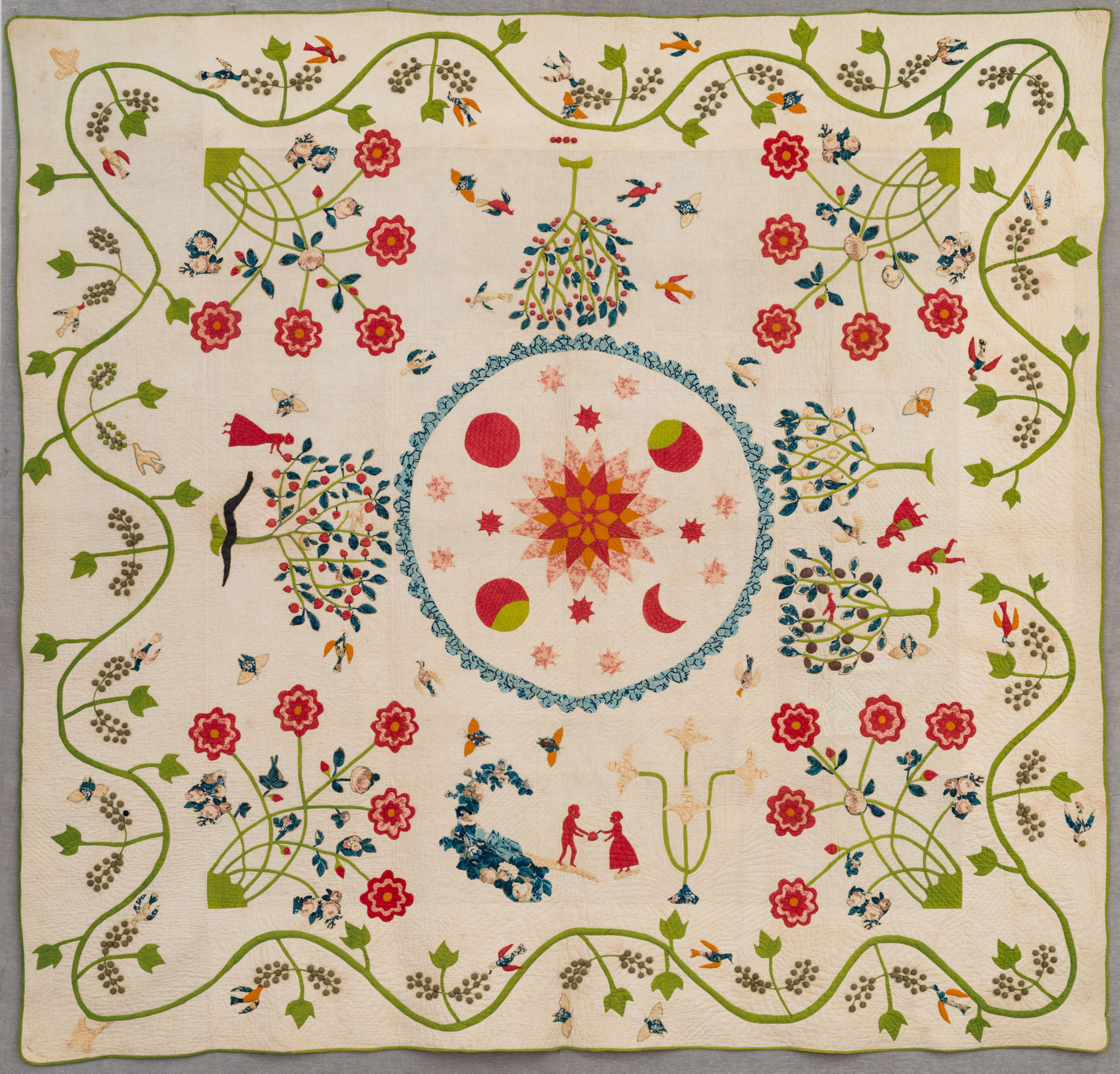 No doubt the lucky owner of the artefact below slept particularly well and dreamt of flowers and bright red people and woke up perfectly rested.